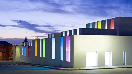 Fachada de herba escultórica que establece relacións coa súa contorna natural. Os espazos interiores de tránsito, moi iluminados, serven ao mesmo tempo como zonas de xogo.