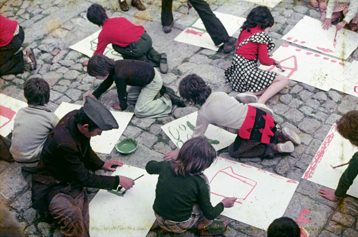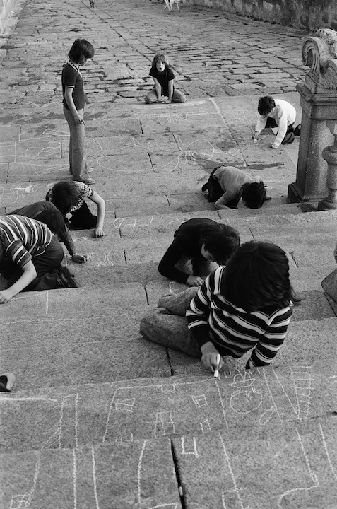 A mediados de los años setenta, Leite transformó esta idea en una práctica profundamente inspiradora: convirtió las calles de Oporto en un aula abierta. Allí, con grupos de niños y jóvenes, experimentaba lo que ella misma llamaba pedagogía de las calles. La ciudad no era solo contexto, sino materia prima: muros, plazas, mercados, sombras, texturas, sonidos… Todo podía convertirse en proyecto artístico y en aprendizaje.